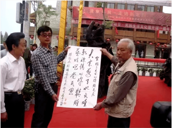 2012年4月29日至5月12日,在北川新县城巴拿恰商业街,《心碑》大型根雕展引起全省乃至全国轰动,吸引了众多当地百姓、游客、媒体的目光。这是世界上唯一以根雕艺术形式的纪实手法,表现“5·12”汶川特大地震后,从抢险救灾到灾后重建全过程的大型系列乌木根雕艺术品。