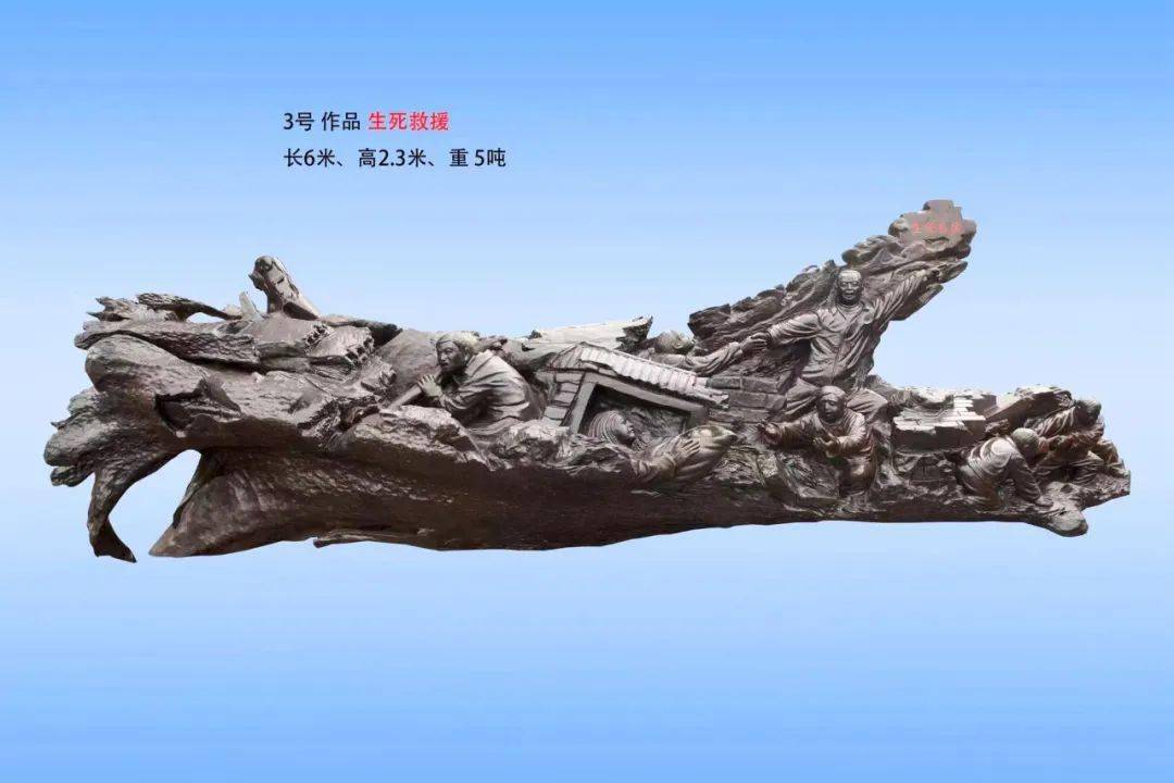 其中最大一件“艰苦奋斗、重建家园”作品长9.7米,高2.2米,重达7吨,共有28个人物。主要描述灾后重建中热火朝天的劳动场景,这里的很多场景都是真实还原再现。
