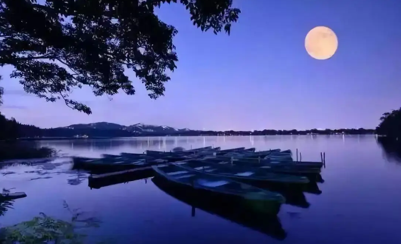 在一弯月亮里,显出疲倦