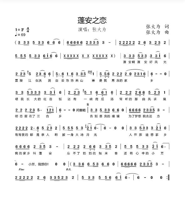“蓬安啊蓬安好风光,嘉陵江在流淌,白云悠悠燕山寨,是我思念的家乡……”近日,由四川蓬安籍音乐人张大为作词作曲并演唱的新歌《蓬安之恋》在QQ音乐、酷狗、酷我以及全民K歌等音乐平台全网上线。