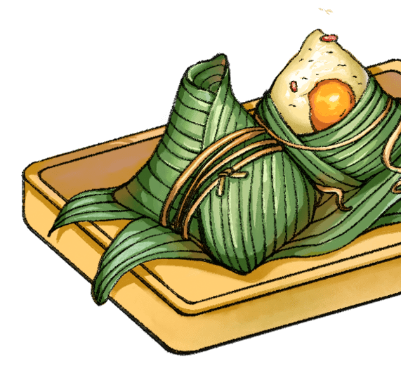 大家都非常感谢小屈原,夸他是个大好人。没想到长大后的屈原却在一个五月初五投江自尽了。大家都非常心痛,怕他在江中没饭吃,就用粽叶包裹糯米煮成不容易散开的饭团,投到江中。为避免鱼虾来抢食,故意把饭团包得有棱有角,还把船装扮成龙的样子,敲锣打鼓地划到江心去投放。天长日久,就形成五月初五吃粽子、划龙舟的习惯了。