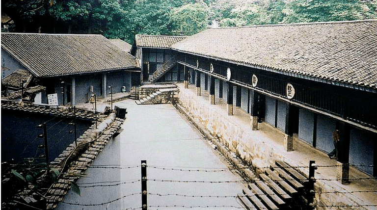 白公馆后面是松林坡,著名的抗日将领杨虎城将军在此遇难。我继续前行,可望见那臭名昭著的“渣滓洞”监狱。这里曾关押过1947年“六一”大逮捕、小民革武装起义、1948年《挺进报》事件、上下川东武装起义中被捕的江竹筠(江姐)、何雪松、胡其芬、蔡梦慰等革命者,最多时关押300多人。