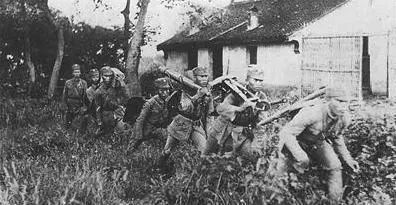 这个晚上。夜,已经深了。而在杨森的20军和刘雨卿的26师阵地上,这时却全然没有一点休息的痕迹。部队在作着攻击前的准备。好像要下雨。天上不时打雷,闪电。借着闪电可以看见一排排川军官兵快速移动的身影。他们在集合,整队,进入阵地。进入攻击前的士兵们,有的在给步枪上刺刀,有的在检查脚上的草鞋的带子是不是已经系紧,绑腿松没松……他们个个黄皮寡瘦,身着单薄的土黄军装,肩挎子弹带,腰带上吊几颗手榴弹。他们的脸上、身上不是污泥就是血迹,看起来非常疲惫,而一双双眼睛却亮得吓人,眼睛闪射着仇恨的怒火和献身的激情。