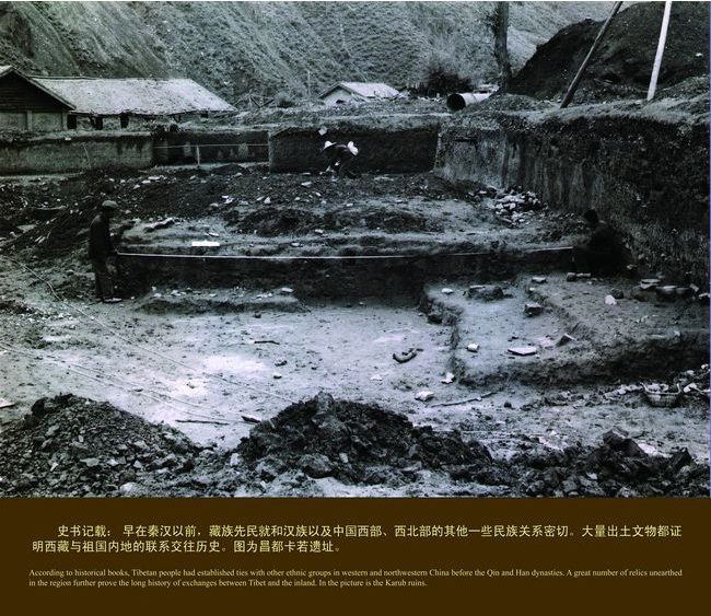 以距今5000—4000年的昌都卡若文化为例,在文化内涵上,卡若文化与青海的马家窑文化、半山、马厂等文化极为接近,其细石器带有明显的北方草原民族的风格(细石器是以用玛瑙、石英、燧石为原料制作出来的形体细小精致的石器而得名),其器型制作,与中亚、南亚的同时代器物都有许多相似之处。我们知道,人类文明的起源不可能是同步的(直到今天,在南美和非洲一些大森林里,还生活着极为原始的人类)。在一个社会发展极端原始时代的文明同步,只可能产生于一种人类的交流!然而,在一个现代交通工具条件下还觉得遥远的距离内,当时的远古人类是怎么“走”到一起的呢?