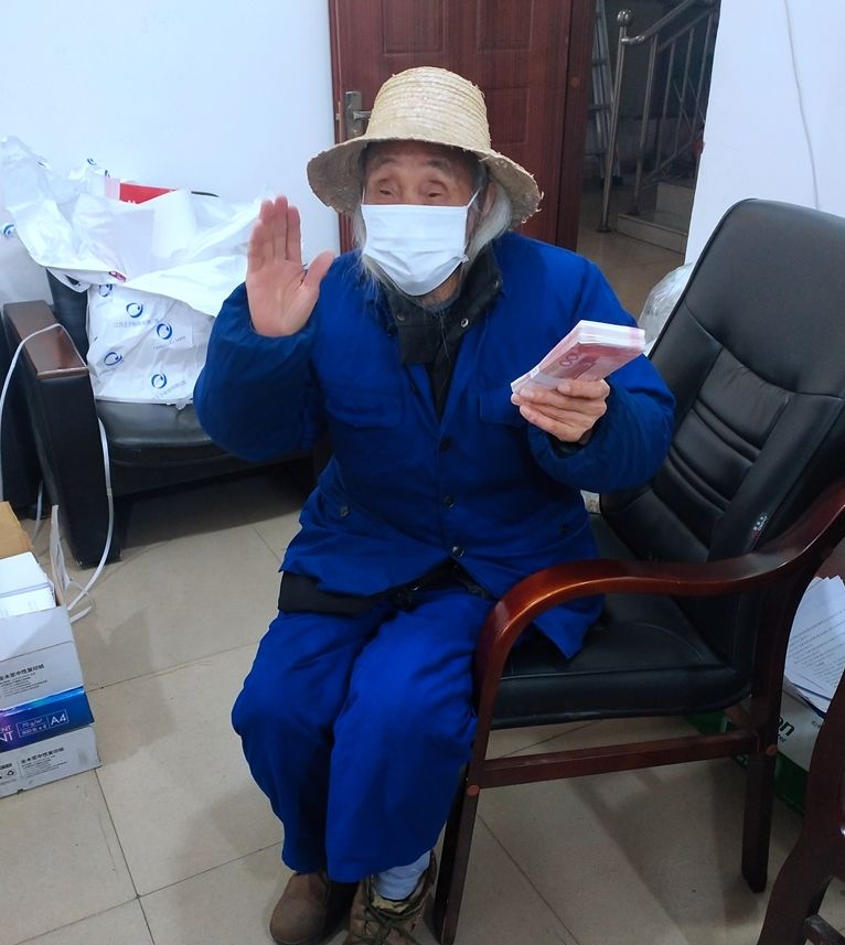为疫情捐款的91岁大爷(图片来源:新华网)