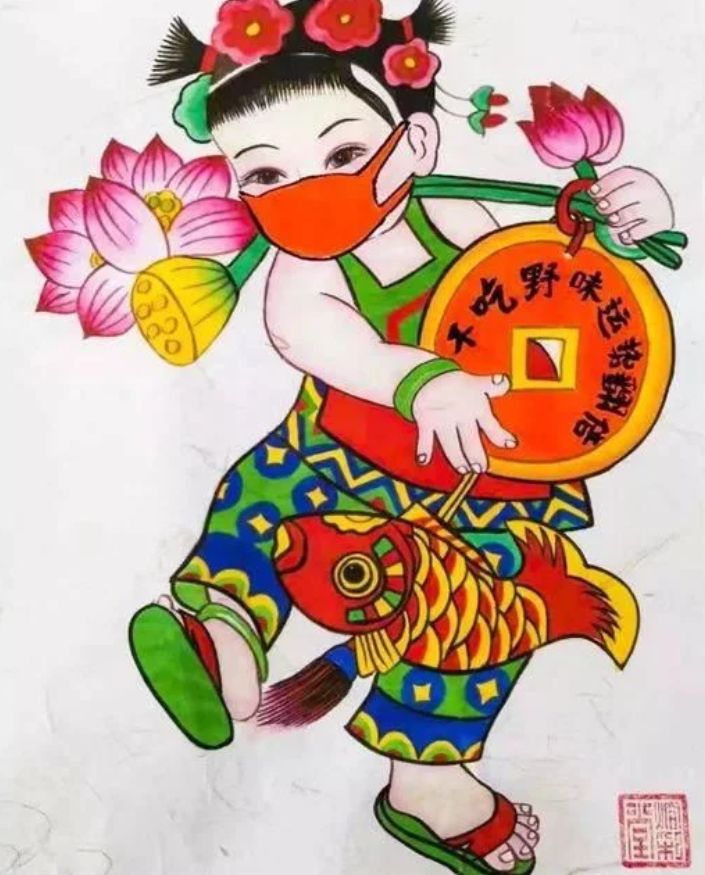 夹江年画艺人为疫情宣传创作的年画(图片来源: 封面新闻)
