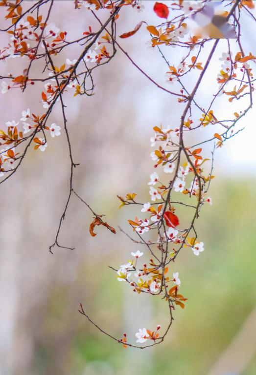 这时候,最快乐的还是鸟儿们了,它们或隐在繁花绿叶之间,或从这棵树飞到那棵树上,呼朋引伴,与我打着招呼。花间蜜蜂飞来飞去,嗡嗡地唱着歌,唱的是什么,应该是在表达春天里的幸福吧。