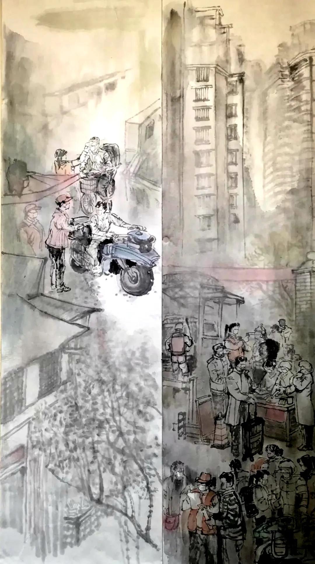 《城乡联防》 中国画 曹念(图片来源:成都画院)