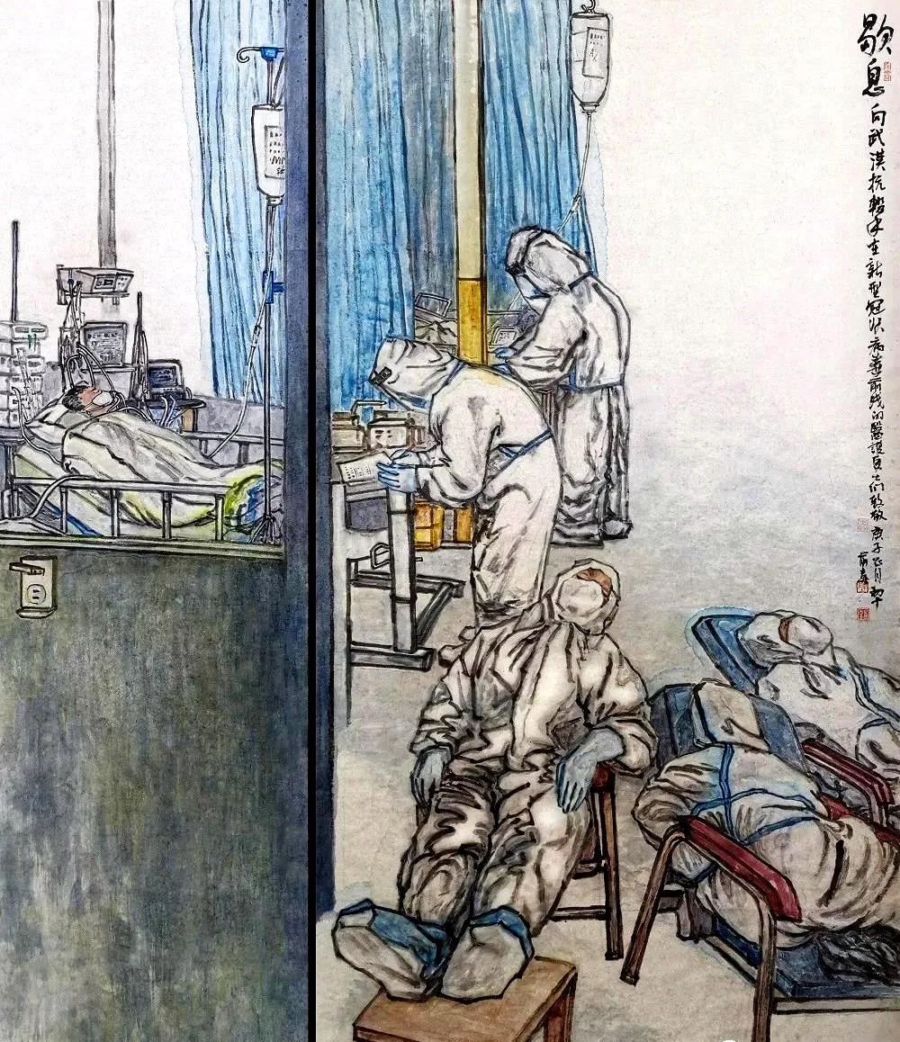 《驰援武汉》中国画 曹念(图片来源:成都画院)