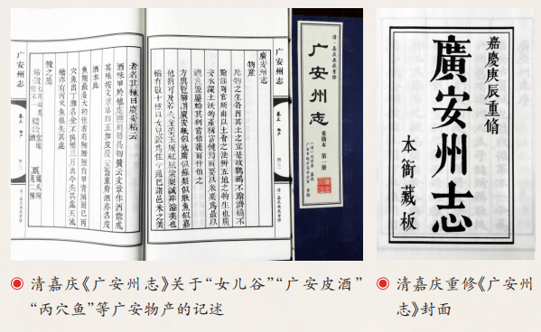 广安为古賨城地。清宣统《广安州新志》载:“土泉膏衍,物产特饶,凡山林竹柏之材,原野羽毛之族,陂池鳞介之虫,水陆草木之实,岩洞药石之宝,畜产皮角之富,自有农圃之学,畜牧之家。”广安物产丰富,盛产稻谷、玉米、高粱、小麦、柑桔、蚕茧、生猪等农产品,素有“金广安,银岳池,红武胜”的美誉。历史上广安产出过许多优质的名优产品,从清代《广安州志》可知,一些名优产品亟待开发,如广安女儿谷、广安酒、华蓥山茶、华蓥山丙穴鱼等。在实施乡村振兴中,挖掘广安历史上的名优产品,打造广安独特的地方品牌,将产生巨大的经济效益。