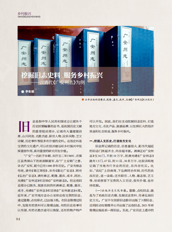 【资治】挖掘旧志史料 服务乡村振兴——以清代《广安州志》为例‖李有毅