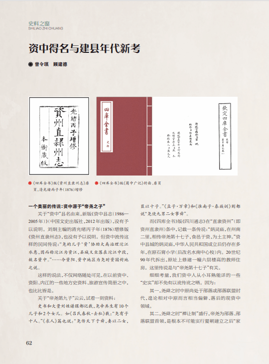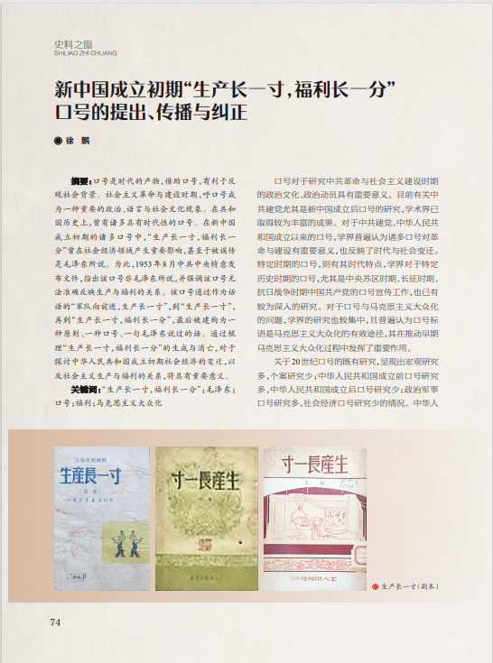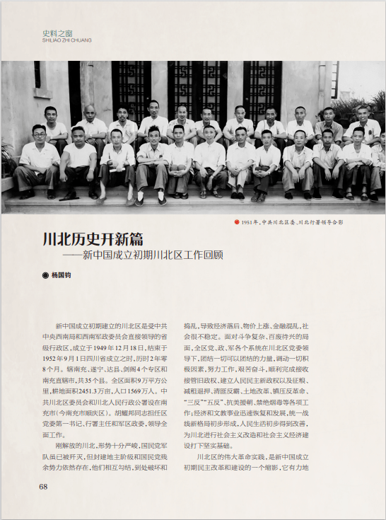 “史料之窗”栏目刊发《资中得名与建县年代新考》一文,从史实研究角度介绍资中得名由来、建县年代,凸显资中县厚重的历史文化。《川北历史开新篇——新中国成立初期川北区工作回顾》一文,通过对川北区人民民主政权的建立、国民经济的恢复与发展、文化教育事业的兴办、南充新城的规划建设,以及支持抗美援朝战争的历史回顾,彰显出川北区民主改革和建设的成功实践及在新中国成立初期的时代价值——有力回击了“共产党在军事上得满分,政治上得八十分,经济上得零分”的错误言论。《新中国成立初期“生产长一寸,福利长一分”口号的提出、传播与纠正》一文,通过梳理“生产长一寸,福利长一分”口号的生成与消亡,对探讨中华人民共和国成立初期社会经济的变迁,以及社会主义生产与福利的关系具有重要意义。