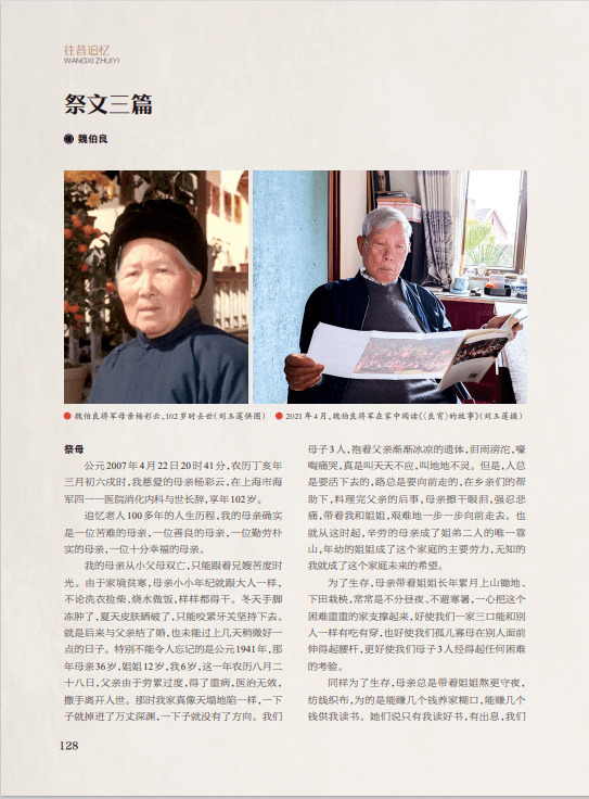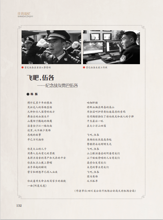 “往昔追忆”刊发《祭文三篇》《飞吧,伍各——纪念战友贾巴伍各》2篇文章,作者通过对家人、朋友、战友的深情追忆,让读者从中感受到温暖的亲情、纯洁的友情和真挚的战友之情。