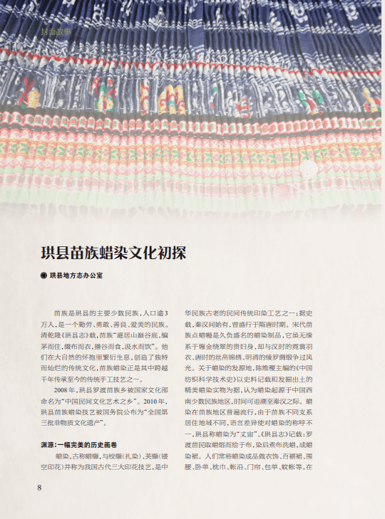 “封面故事”以四川省珙县为宣传推介对象,刊发3篇文章。其中,《珙县苗族蜡染文化初探》《僰人悬棺——一个神秘部族的历史印记》通过介绍珙县苗族蜡染的厚重历史、精湛技艺、丰富内涵,记述“僰人悬棺”的重要价值、未解之迷,充分展现珙县多彩的民族文化、厚重的历史文化;《茶马古道 珙桐之乡——珙县王家镇》一文,采取小切口、大纵深形式,介绍王家镇的历史脉络、历史名人和古建筑、丰富资源、革命故事、美食文化等,为宣传生态宜居美丽乡村、助力乡村振兴贡献力量。