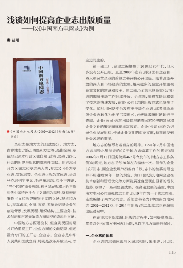 “史志研究”栏目刊发4篇文章。《浅谈志鉴成果印刷中的几个问题》《精编印刻城市图景鉴记成都续写新篇——中国精品年鉴〈成都年鉴(2023)〉创建之路》《浅谈如何提高企业志出版质量——以〈中国南方电网志〉为例》《清末乡土志中的国家认同与爱国主义表达——以四川地区乡土志为例》,分别从志鉴成果印刷、精品年鉴编纂、企业志编修出版和利用、地方志弘扬爱国主义等方面进行了探索,实践性和操作性极强,对于提高志鉴编纂质量和地方志资源开发利用,具有重要的借鉴意义和参考价值。