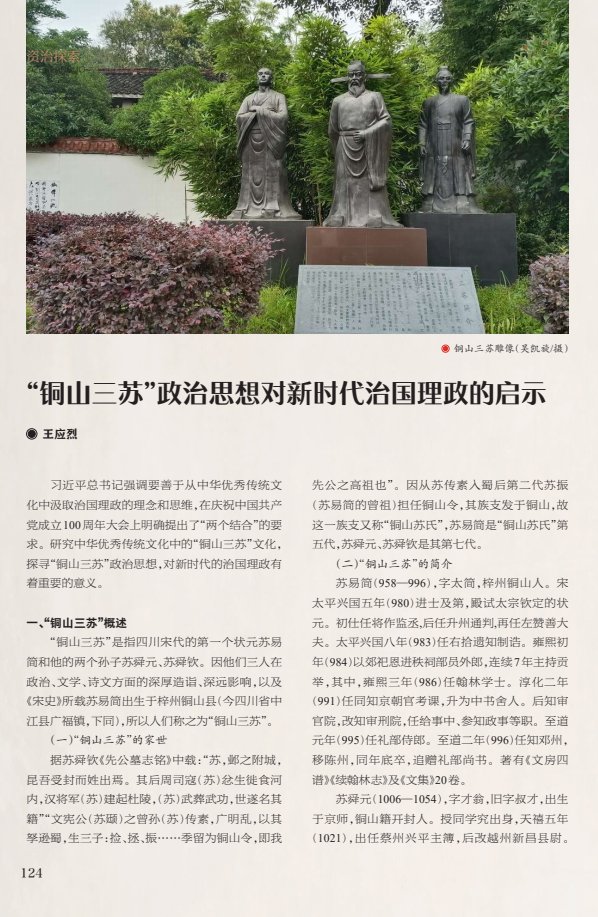 “资治探索”栏目刊发3篇文章。《“铜山三苏”政治思想对新时代治国理政的启示》《晏阳初乡村建设理论在新时代乡村振兴中的现实意义》《眉山市党史和方志馆建设与发展的思考》,分别介绍“铜山三苏”的政治思想和对新时代治国理政的启示思考,晏阳初乡村建设理论和对当前乡村振兴的时代意义,眉山市党史和方志馆建设经验对推进史志馆发展的借鉴价值,启发读者思考,并从中受益。