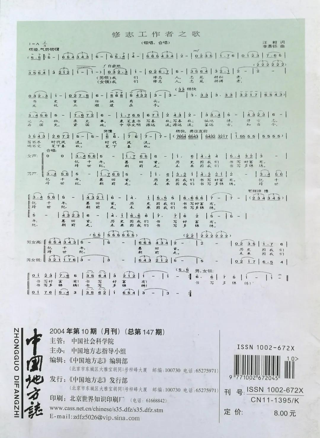 2004年第10期《中国地方志》发表《修志工作者之歌》