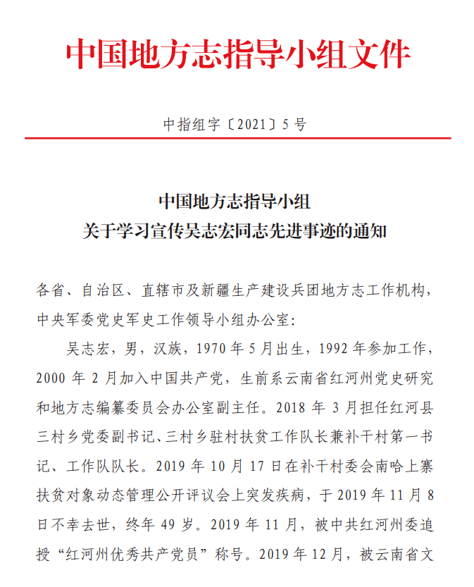 2021年1月29日,中国地方志指导小组办公室印发《关于〈在全国地方志系统开展“学习吴志宏、建功新时代”主题宣教活动实施方案〉的通知》,在全国地方志系统开展向吴志宏同志学习活动。四川省地方志系统积极行动,扎实开展宣教活动,向先进学习、向典型靠拢、向标杆看齐,推动地方志事业转型发展。