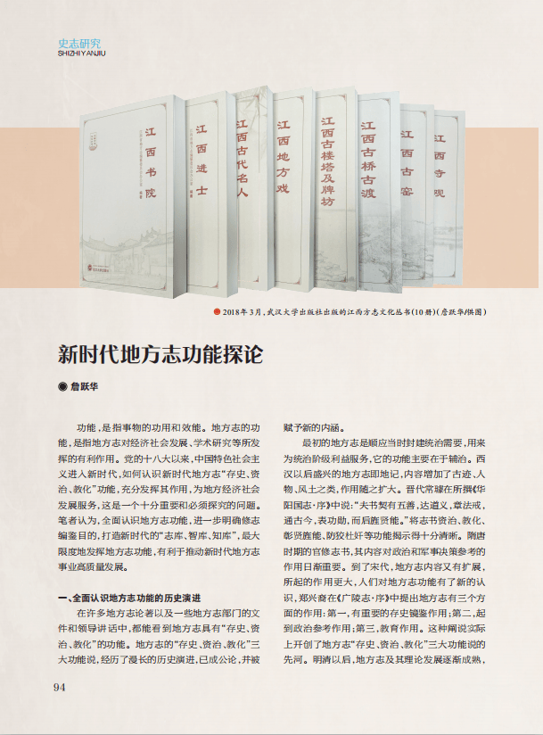 【志鉴编修】新时代地方志功能探论‖詹跃华