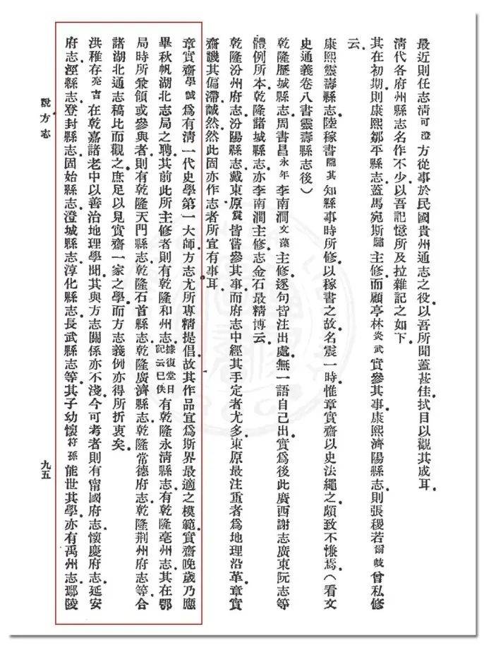 其一,梁文所谓方志学,乃是以乾嘉学派为中坚的清代学者“整理旧学”总成绩之一部分,也即清代方志学,仍属于传统意义上方志编修的学问。这是梁文立论之基。