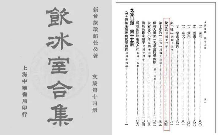 1924年,梁启超发表《说方志》一文,收录于《饮冰室合集》第十四册(图源:1936年版《饮冰室合集》,上海中华书局印行)