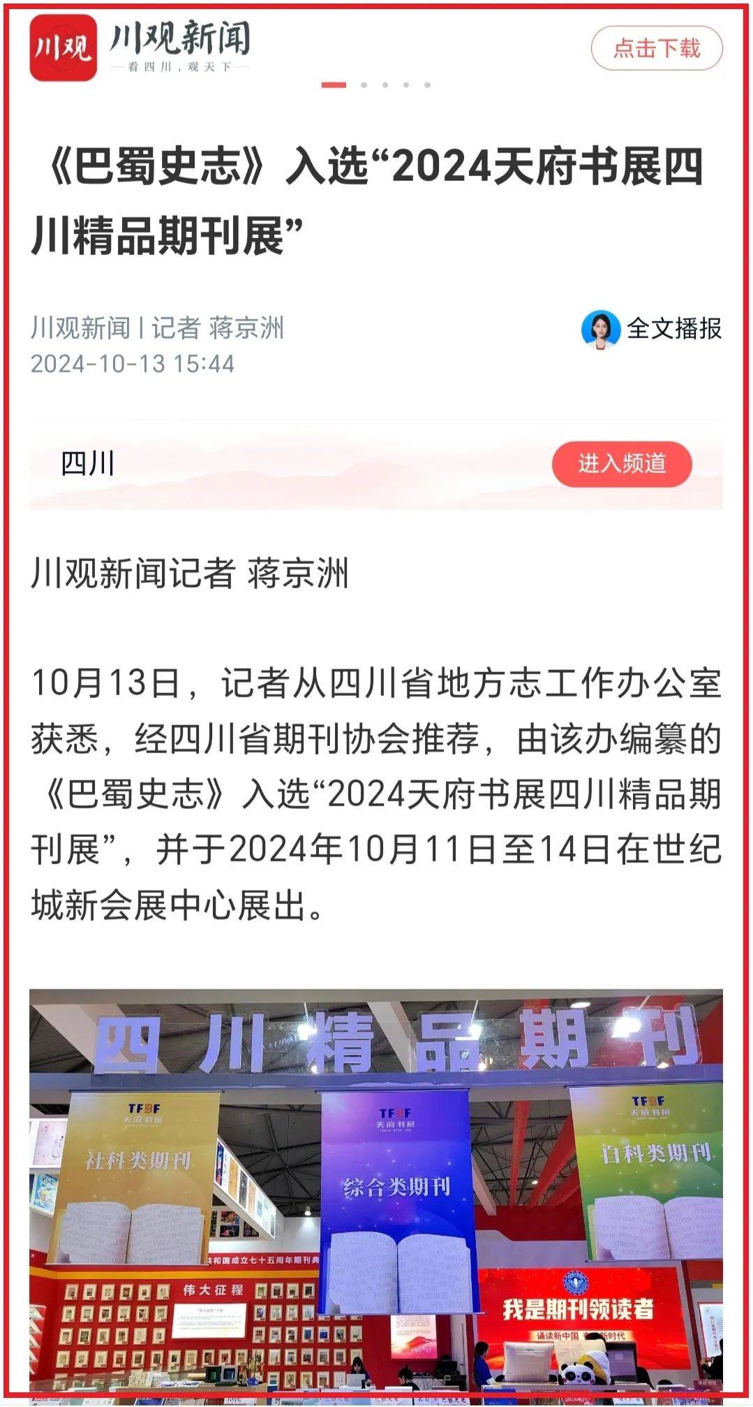 《巴蜀史志》入选第三十届北京国际图书博览会(BIBF)“2024中国精品期刊展”。
