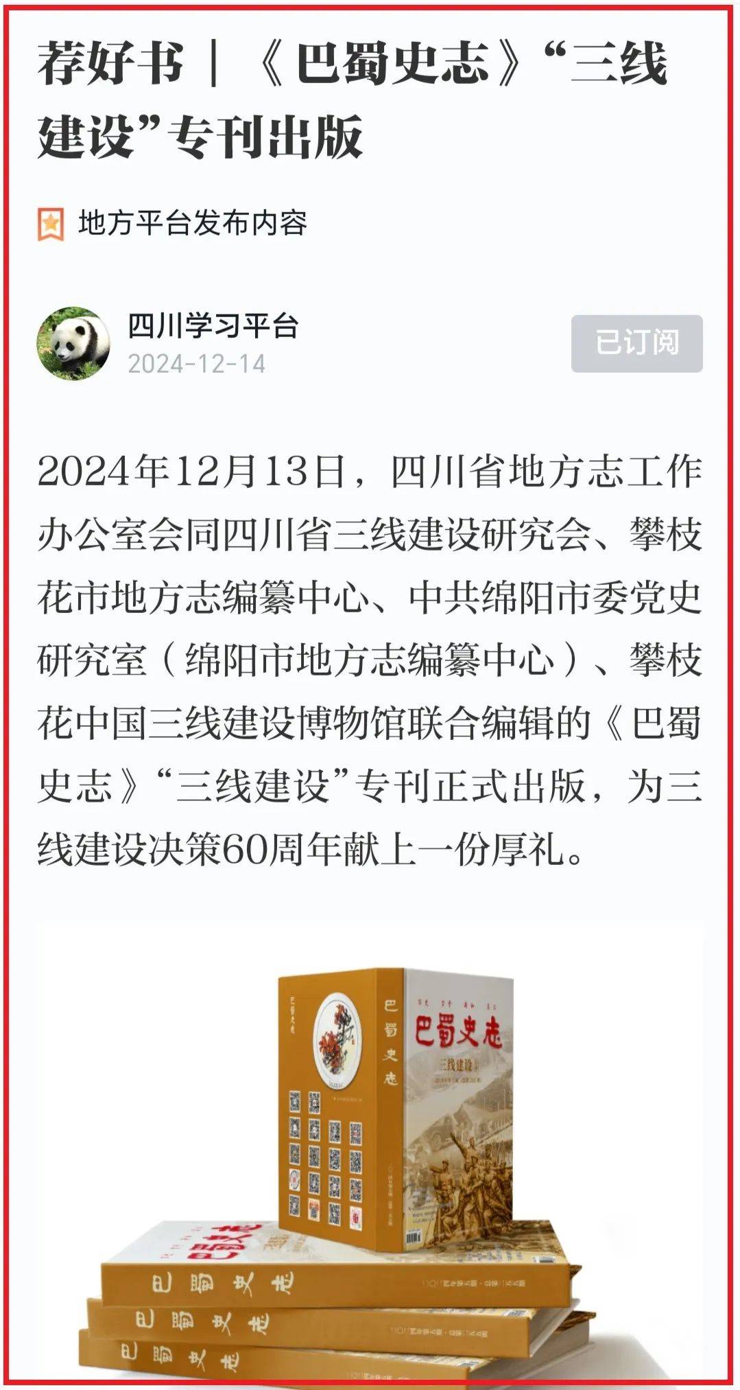 三是加强与各界媒体合作,扩大关注影响。加强主流媒体对《巴蜀史志》扩容改版、出版专刊增刊等信息的宣传报道。“庆祝中华人民共和国成立75周年”专刊出刊后,学习强国、四川省人民政府网、四川新闻网、四川省期刊协会微信公众号等予以报道;“三线建设”专刊出版后,人民网-四川频道、学习强国、金台资讯、四川省期刊协会微信公众号等予以报道。2024年,四川省期刊协会微信公众号先后以《〈巴蜀史志〉获全国通报表扬》《鲜明自身定位 服务发展所需——2023年〈巴蜀史志〉编辑出版工作回顾》《弘扬三线精神 谱写时代华章——〈巴蜀史志〉“三线建设”专刊出版》等为题4次作宣传报道。“学习强国”先后宣传报道《巴蜀史志》“庆祝中华人民共和国成立75周年”“三线建设”专刊出版。川观新闻就《巴蜀史志》入选“2024天府书展四川精品期刊展”作宣传报道。