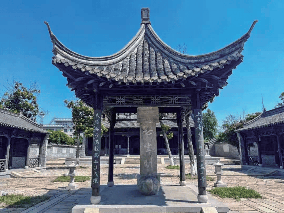 魏源所撰、曾悬挂于高邮州署、现移置大堂前作亭柱联的对联:上有青天,一片冰心盟上帝;民皆赤子,满腔热血注民瘼。