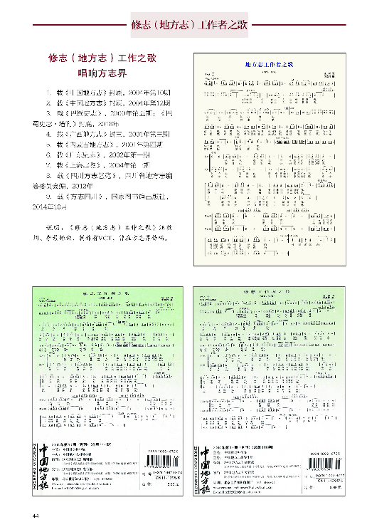 2.该歌曲发表于《中国地方志》《巴蜀史志》《巴蜀史志·增刊》《黑龙江史志》《广西地方志》《内蒙古地方志》《广东史志》《上海志鉴》《四川方志艺苑》《方志四川》,制作有VCD,曾唱响方志界。