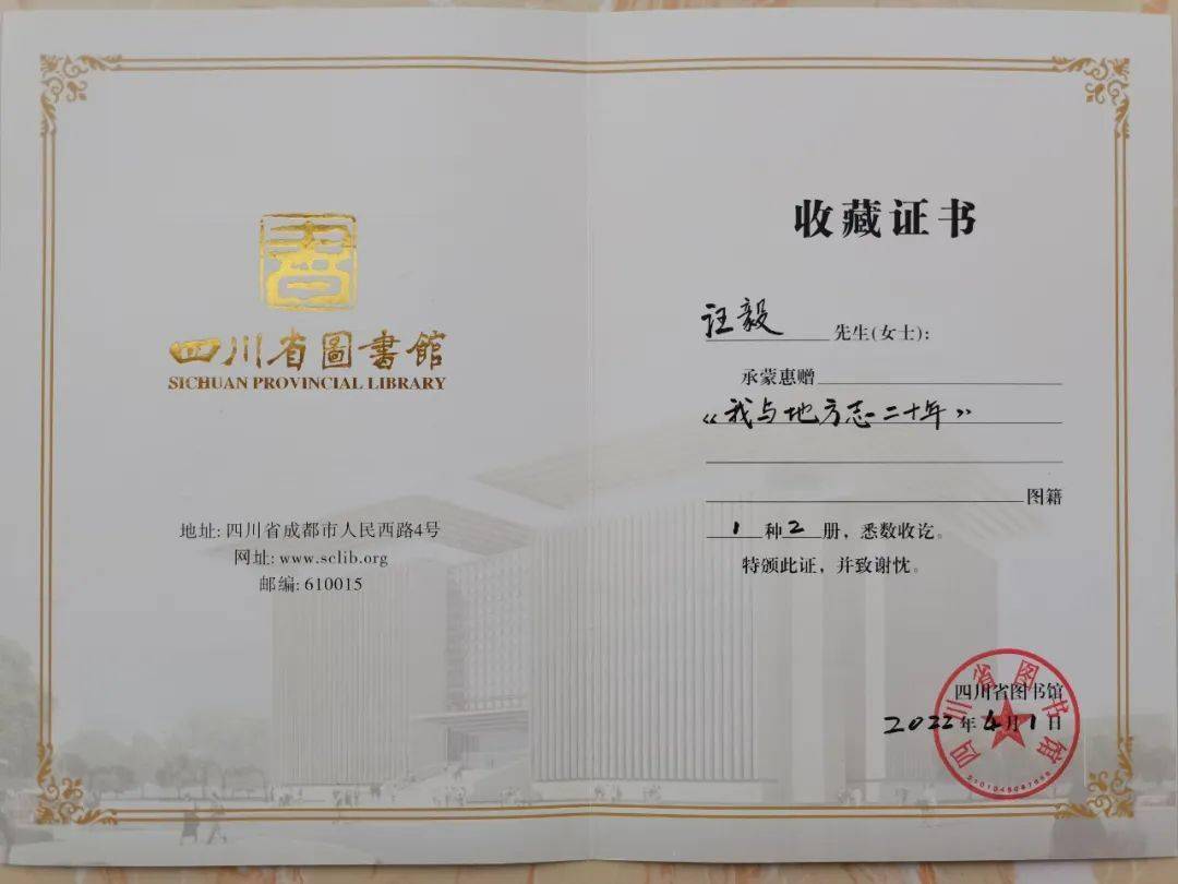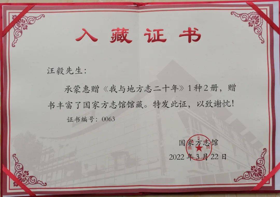 四川省地方志工作办公室原副巡视员汪毅著、四川省地方志工作办公室编的《我与地方志二十年》一书于2022年3月问世。全书42万字,166幅图片。图文互为补充、相得益彰,体现了作者的修志格局和方志视野。该书被国家方志馆、四川省方志馆、四川省图书馆等馆收藏。