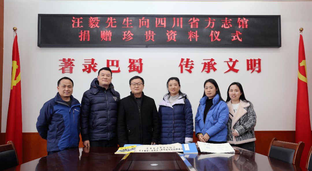 2022年2月10日,汪毅向四川省方志馆捐赠资料60余种(左一为本文作者李果)