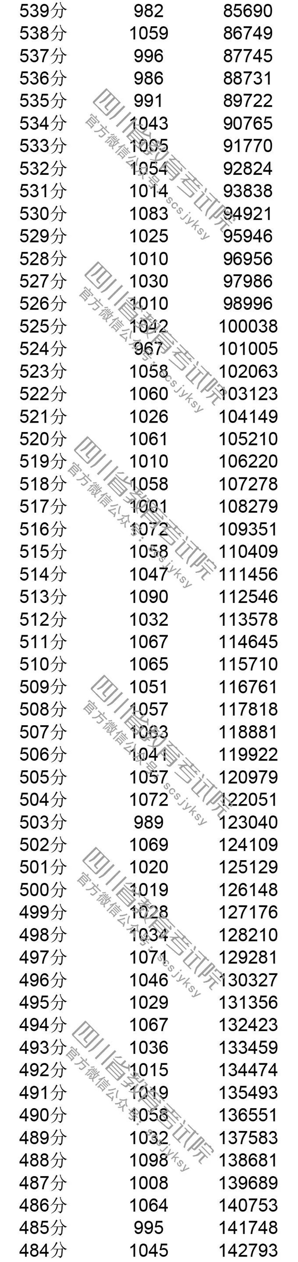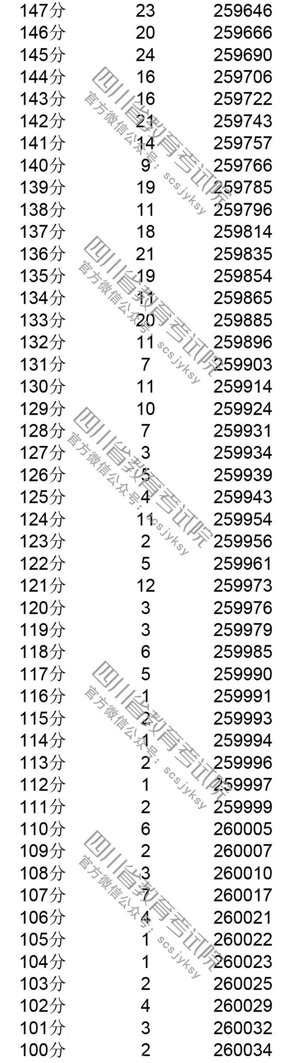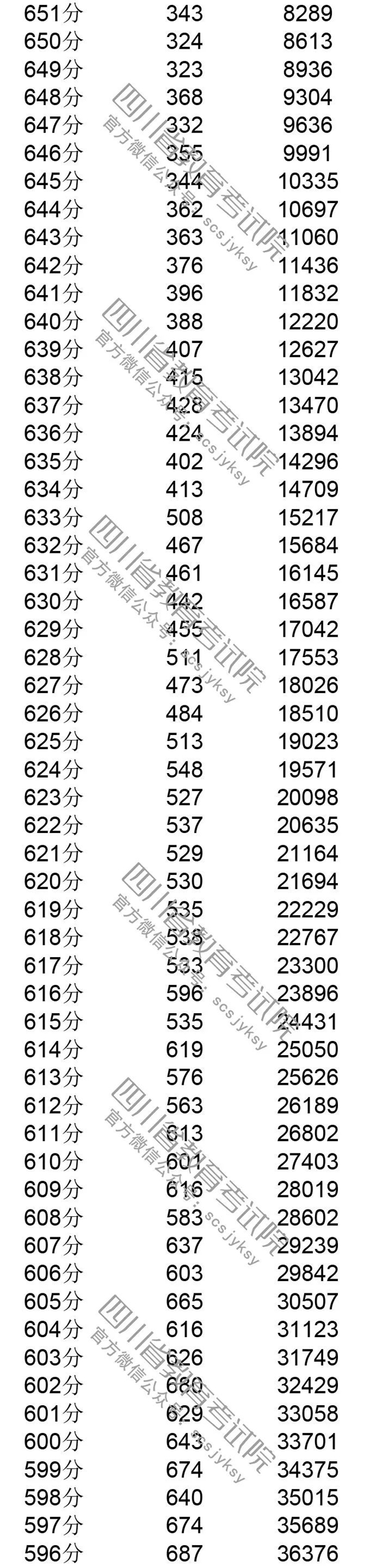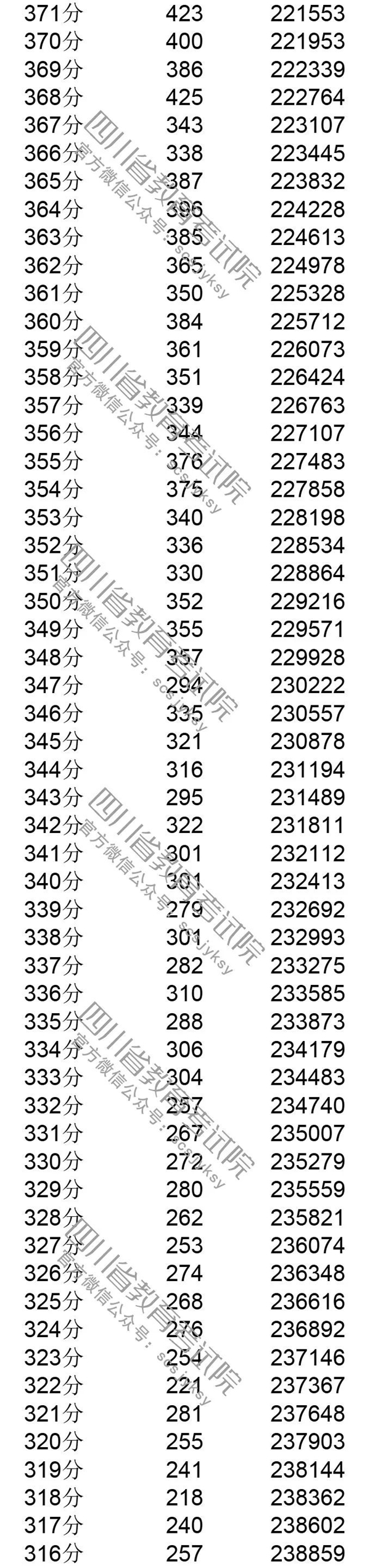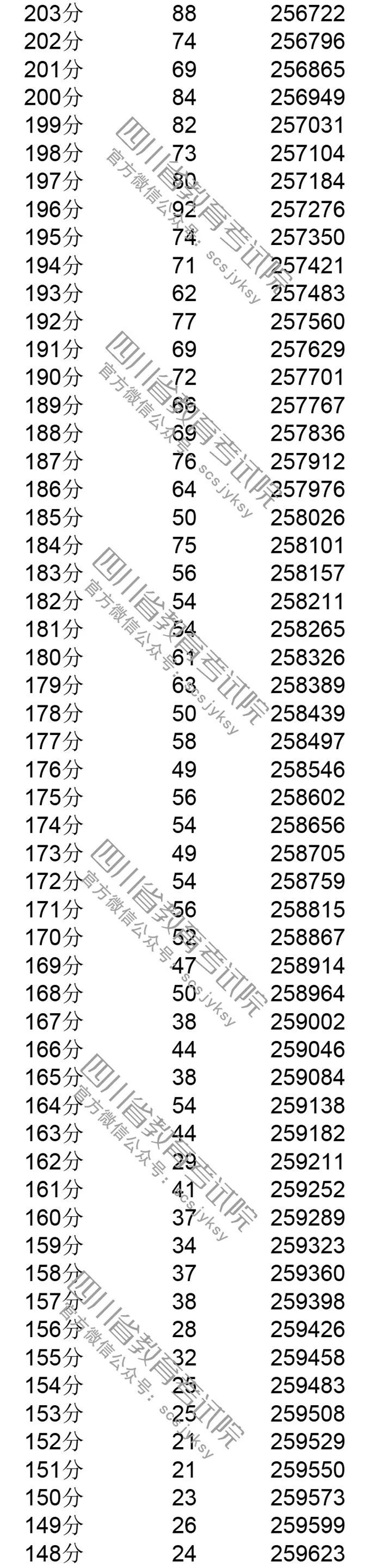 官方发布!四川省2019年普通高考理科成绩分段统计表出炉! 来源:四川教育考试院 发布时间:2019-06-23 09:03:49 浏览次数: 次 【字体:小 大】 注:100分以下略。 来源: 四川教育考试院 终审:何晓波 分享到: 关闭本页 【打印正文】