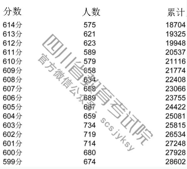 累计人数:指的是这个分数段上的分数人数累加。比如614分累计人数为18704,表明614分及614分以上的人数共有18704人。
