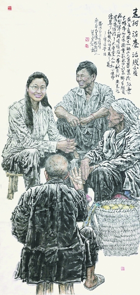 走村访寨话脱贫(中国画)梁惠统