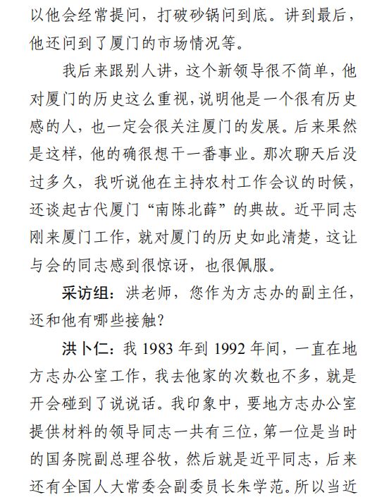 今日,“方志四川”特转发2019年8月2日《学习时报》刊载的采访实录《习近平在厦门》之《“像习副市长这样对地方志感兴趣的领导真不多见”》,以便我们了解习近平总书记对地方志的眷眷情怀,进一步增强文化自信,为实现中华民族伟大复兴的中国梦而努力奋斗。