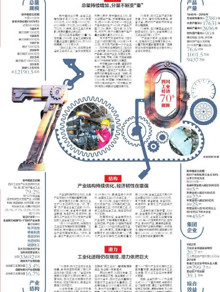 过去70年,类似的场景在四川并不少见。省统计局公布系列报告显示,从积贫积弱到工业大省,从生活用品到高科技产品制造,从手工作坊到企业集群,从简单结构到完整体系,四川工业70年走出了一条不断长大变强之路。