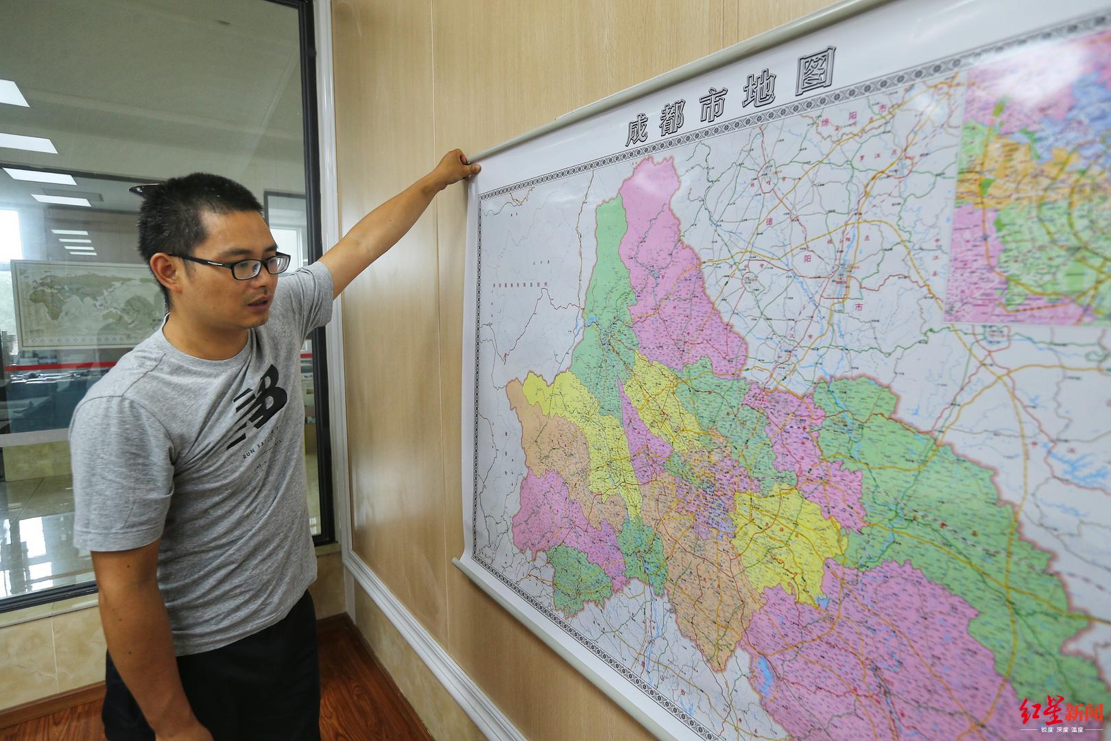 ▼成都地图出版社工作人员游世龙在讲述最新版的成都市地图