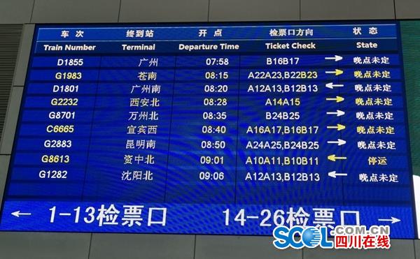 【08:25报道】受内江地震影响 成都东站多趟列车停运、晚点