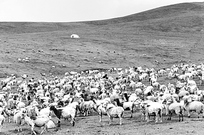 近年来,甘肃通过实施水源涵养区保护、荒漠化治理、退耕还林等举措,生态环境持续改善。图为祁连山下牧场里的羊群。新华社发