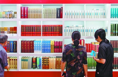 读者在2019上海书展上参观新中国成立70周年辞书成就展。新华社发