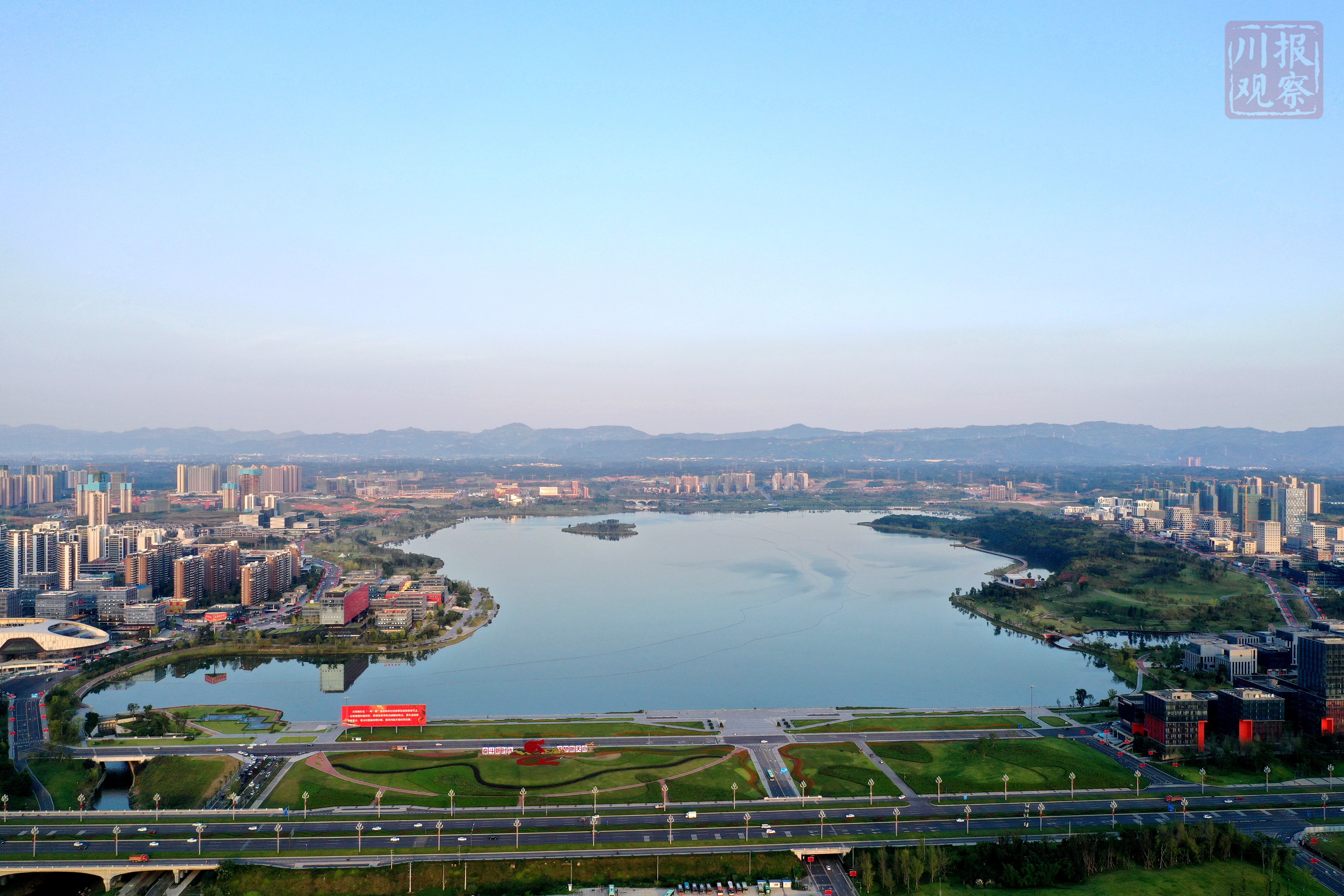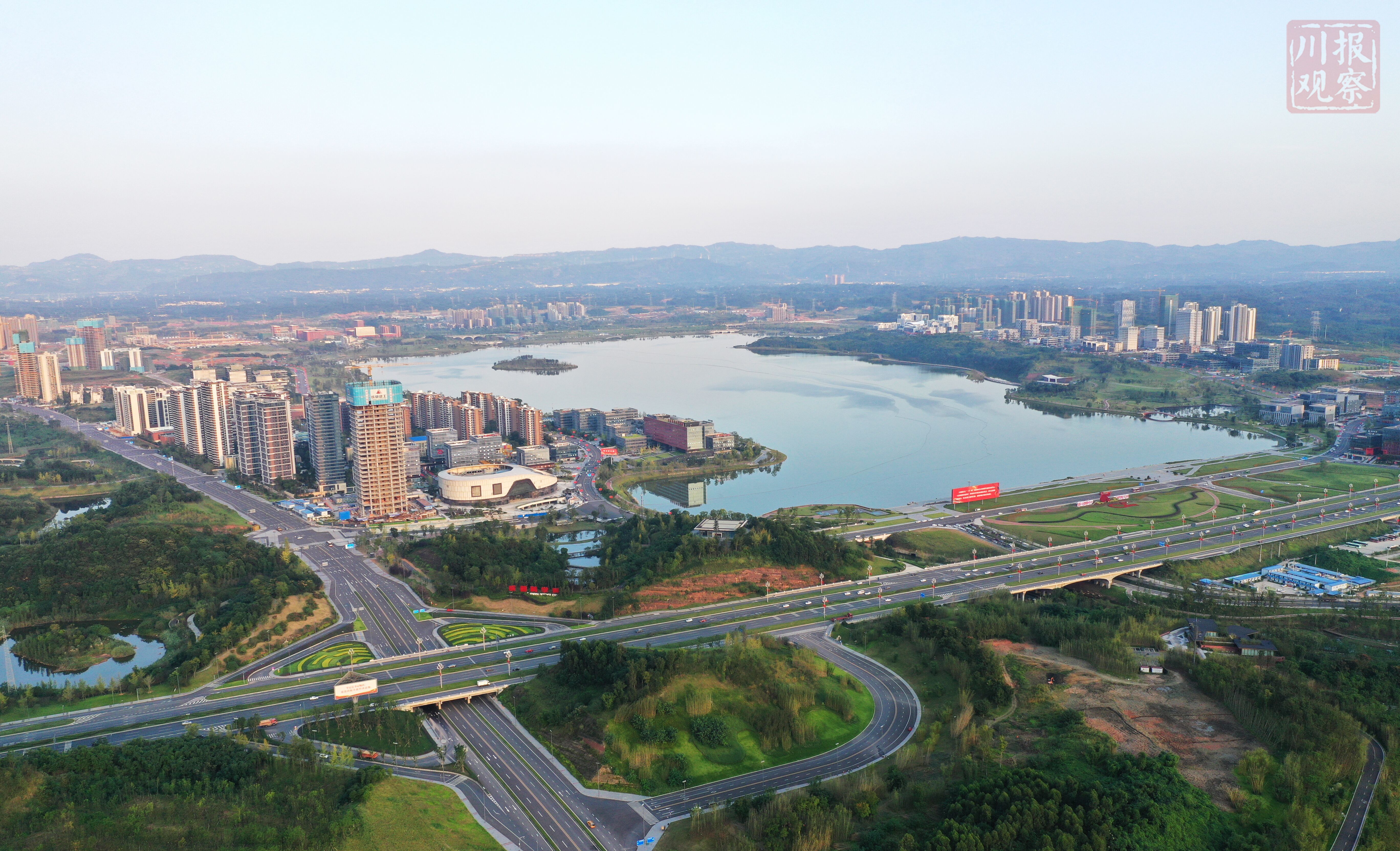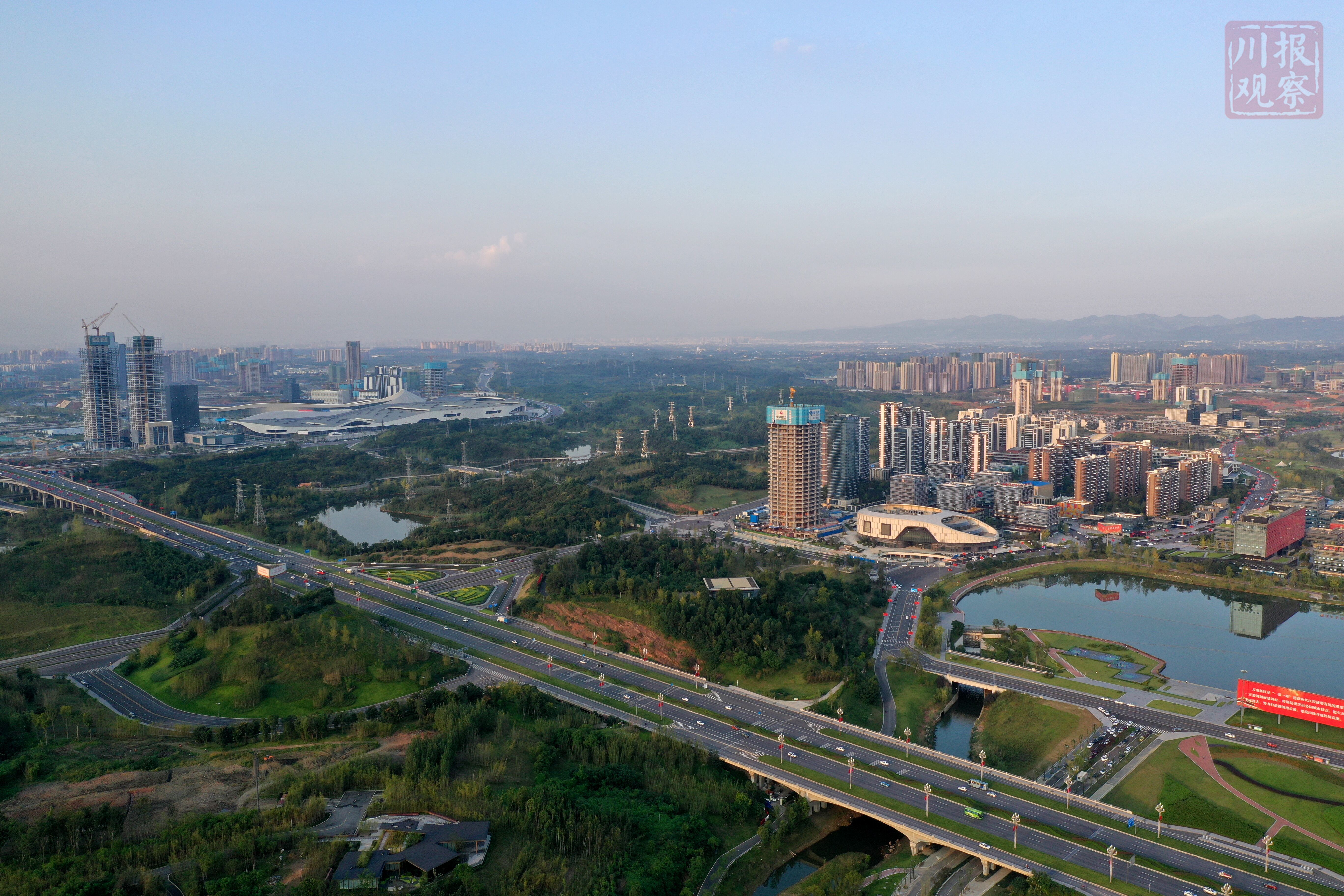 成都天府新区傍晚美如画 远处龙泉山肉眼可见(川报观察记者 李向雨)