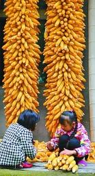 9月21日,在湖北省利川市谋道镇长坪村,两名小朋友在收获的玉米旁玩耍。 新华社发(杨顺丕摄)