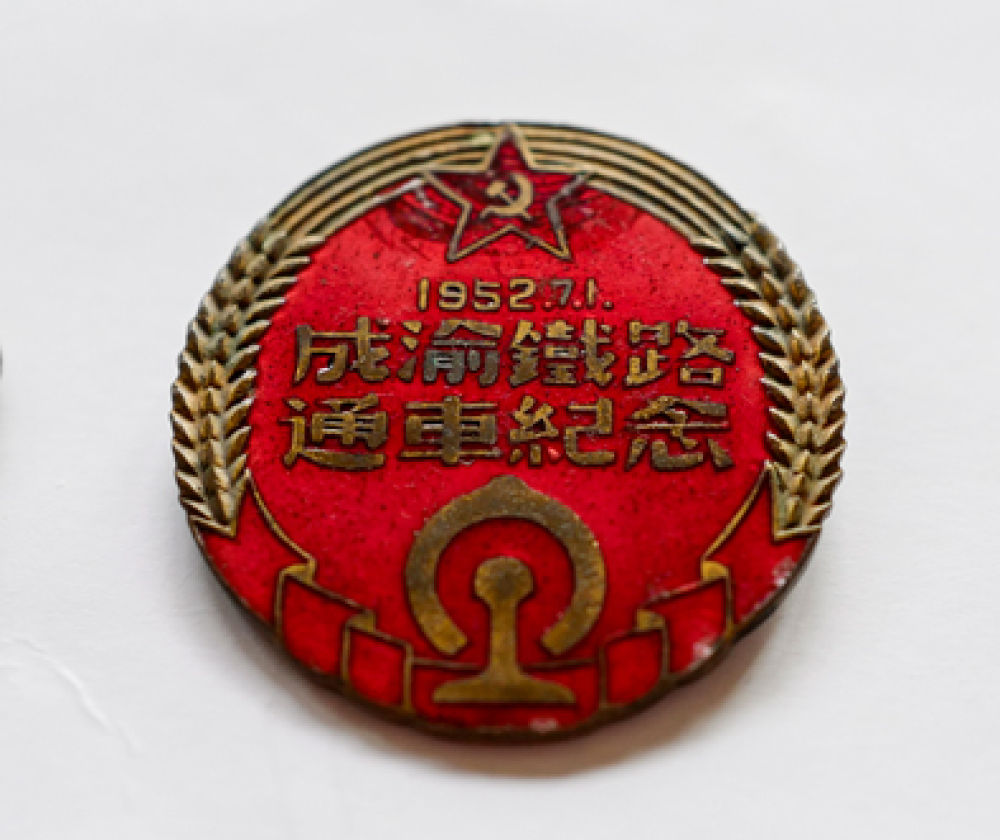 ▲成渝铁路通车纪念章。新华社记者刘潺 摄