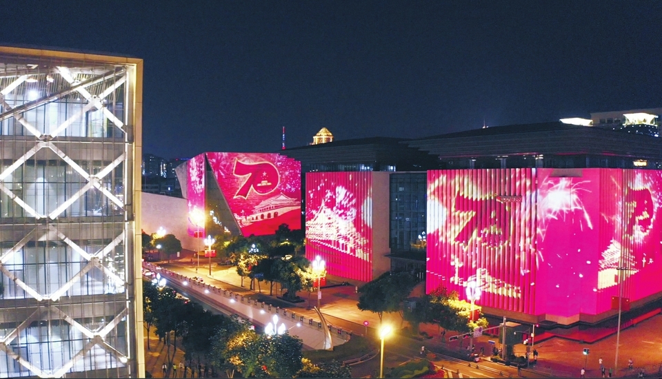 在新中国成立70周年之际,唯美的视觉盛宴点亮成都的夜。