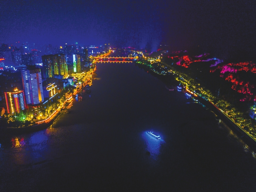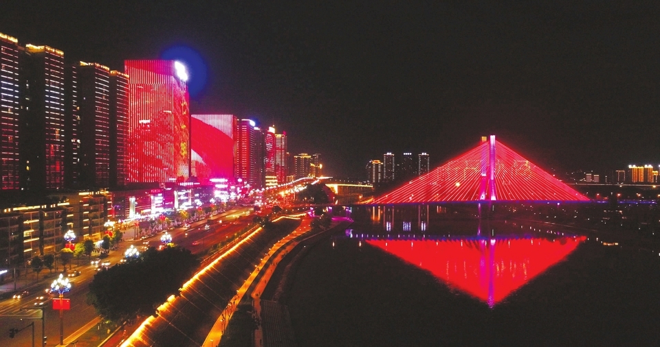 光影流动,川东北区域中心城市南充的嘉陵江畔,已是一片“中国红”。