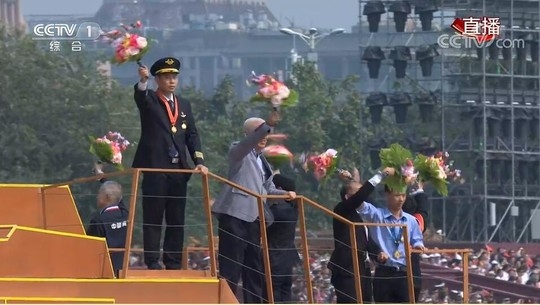 四川在线消息(记者 张立东 袁婧 肖雨杨)10月1日上午,群众游行正在进行中,记者看到了来自咱四川的邮政驾驶员其美多吉和“英雄机长”刘传健出现在主题彩车上。
