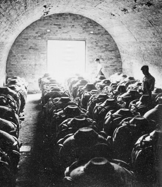 1959年7月,由几家古传酿酒作坊联合组建而成的宜宾酒厂正式命名为宜宾五粮液酒厂。图为该厂当年酒窖。