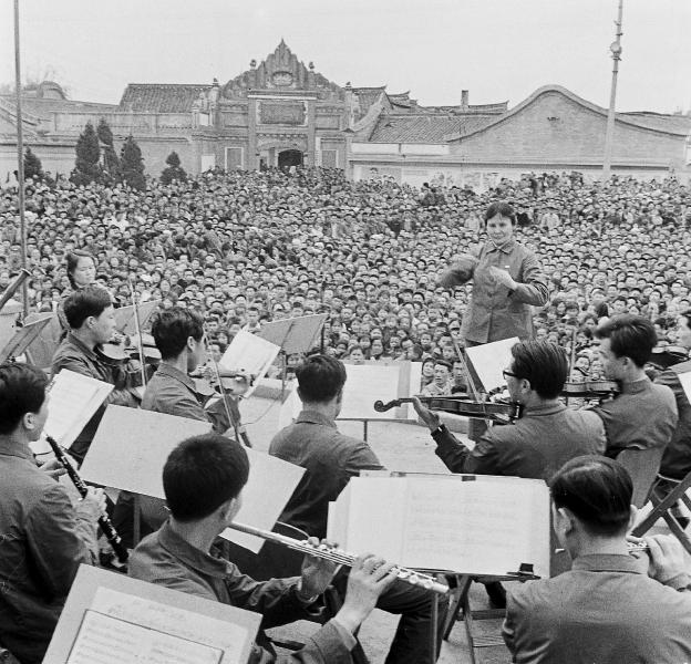 1975年4月,中央乐团和中国京剧团到大邑县安仁镇,为农民联合演出《红灯记》。