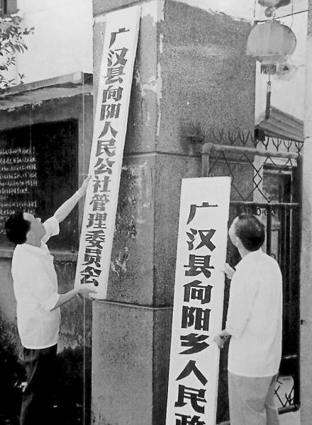 必须要改。1979年9月,广汉县委在向阳公社进行政、社工作分开试点,得到省委肯定。1980年5月,广汉县委在向阳公社进行人民公社体制改革试点。9月,“广汉县向阳人民公社管理委员会”的牌子被摘下,挂上“广汉县向阳乡人民政府”的牌子。向阳乡成为全国最早改变政社合一人民公社体制,实行党政分工、政企分开的新体制乡。