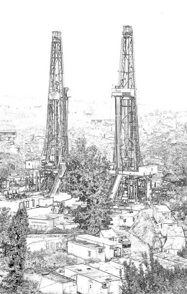 1976年四川石油管理局钻成两口超深井,标志着四川的超深井钻探技术进入世界先进行列。图为现在的双机钻页岩气水平井。
